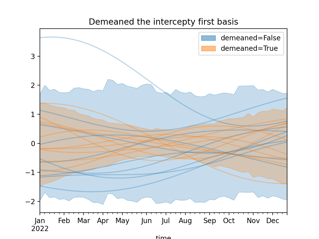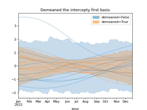 )Using a demeaned basis to remove “intercept” effect of first basis: